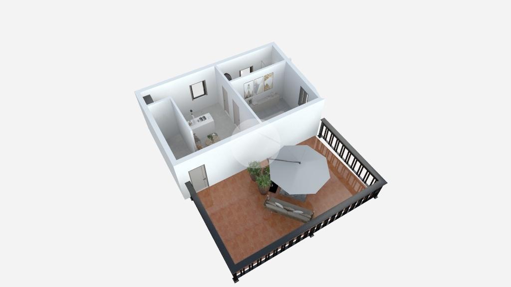 L’ingresso conduce a un ampio soggiorno con cucina a vista, reso ancora più accogliente dalla presenza di un terrazzo di 45 mq, perfetto per cene all’aperto, momenti di relax o convivialità con amici e familiari.