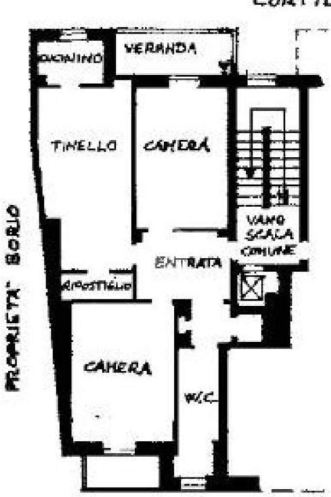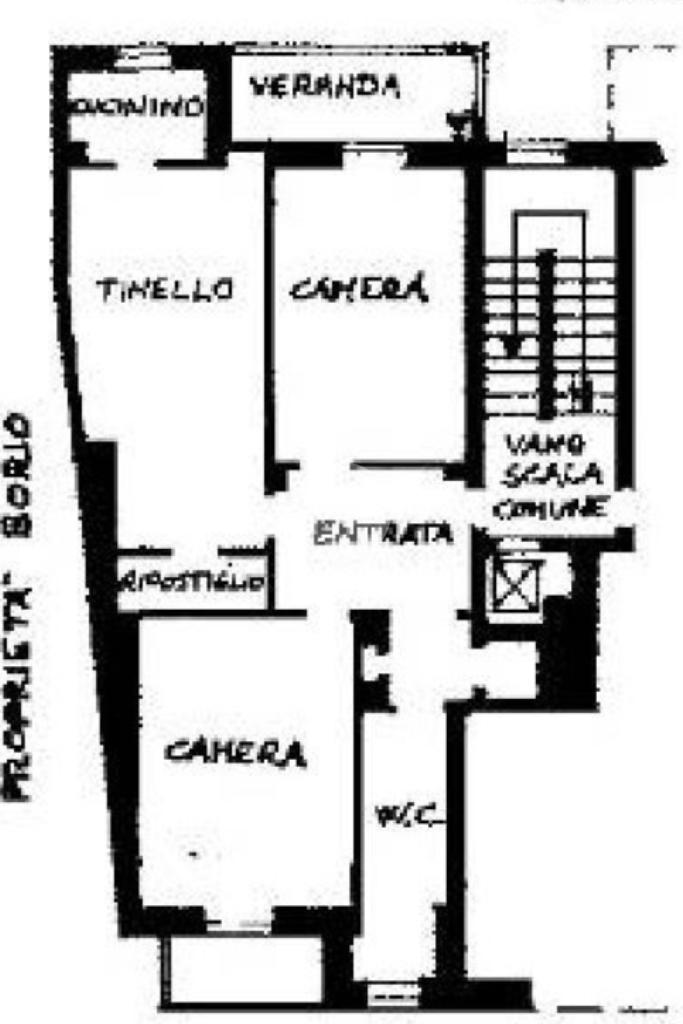 La zona giorno è composta da un luminoso tinello con accesso ad un balcone verandato e da un cucinino finestrato, ben separato.