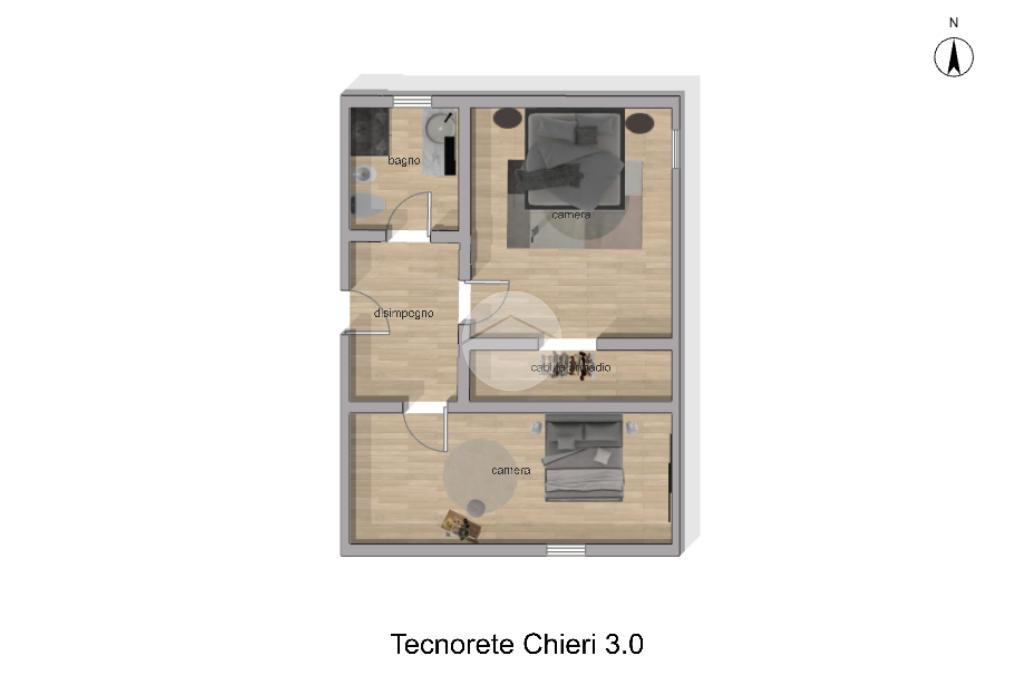 Il piano superiore ospita due camere da letto matrimoniali e un secondo bagno. Grazie alla generosa metratura, è possibile ricavare facilmente una terza camera con cabina armadio.