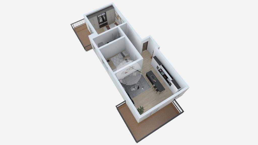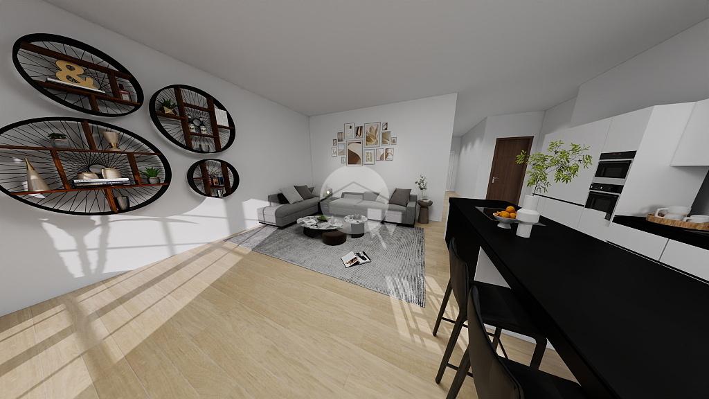 La zona giorno, ampia e particolarmente luminosa, è affiancata da un pratico cucinino e si apre su un primo terrazzino vivibile, perfetto per piacevoli momenti di relax all’aperto.