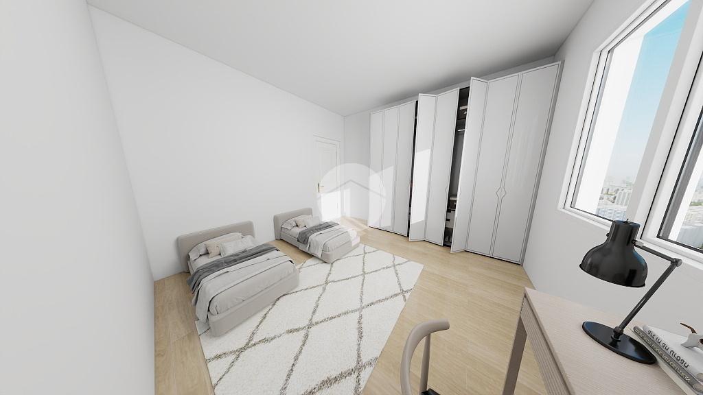 La zona notte ospita due spaziose camere matrimoniali, una delle quali valorizzata da un secondo balcone angolare che assicura un’eccellente esposizione e una gradevole luminosità naturale durante tutto l’arco della giornata.