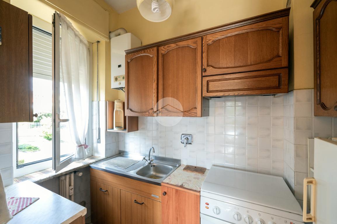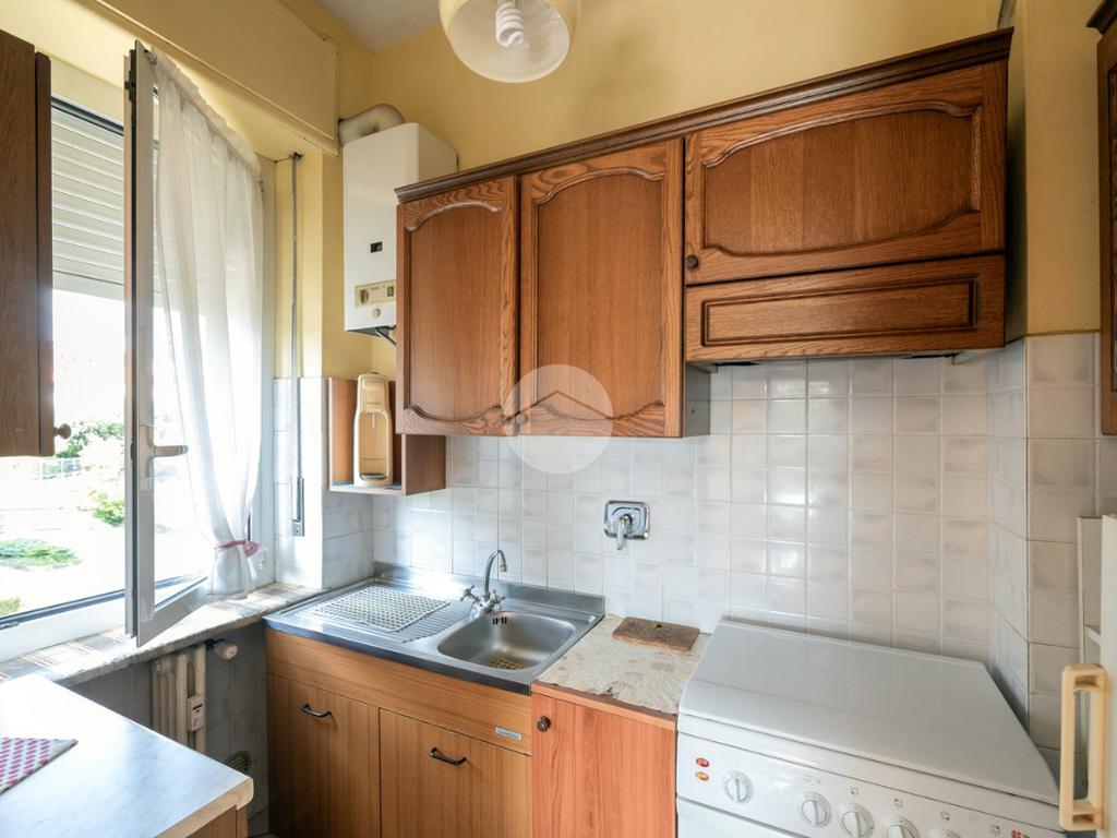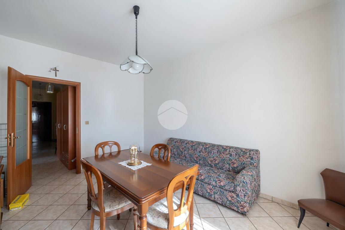 Adiacente ad essa si trova la zona giorno composta da un tinello accogliente con cucinino separato, reso particolarmente luminoso da una porta finestra che apre su un secondo balcone.