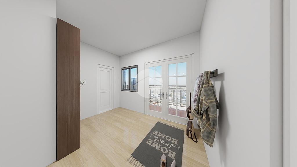 L'ingresso conduce a un accogliente disimpegno illuminato naturalmente grazie alla presenza di una finestra ed una portafinestra che dà accesso al balcone.