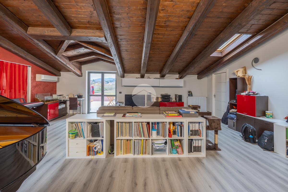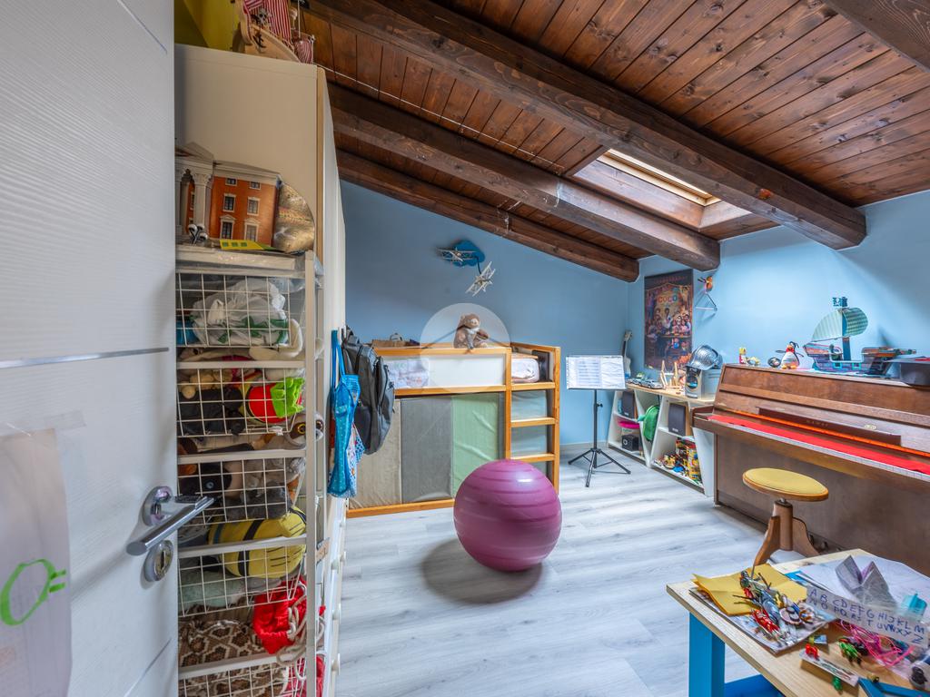 Nonostante la presenza del tetto mansardato, gli spazi risultano pienamente vivibili grazie a un’altezza minima di 1,85 metri.