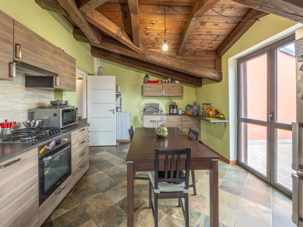 La cucina abitabile, separata dal soggiorno per garantire comodità e riservatezza, dispone a sua volta di un secondo ampio terrazzo, perfetto come ulteriore spazio esterno da vivere durante la bella stagione.