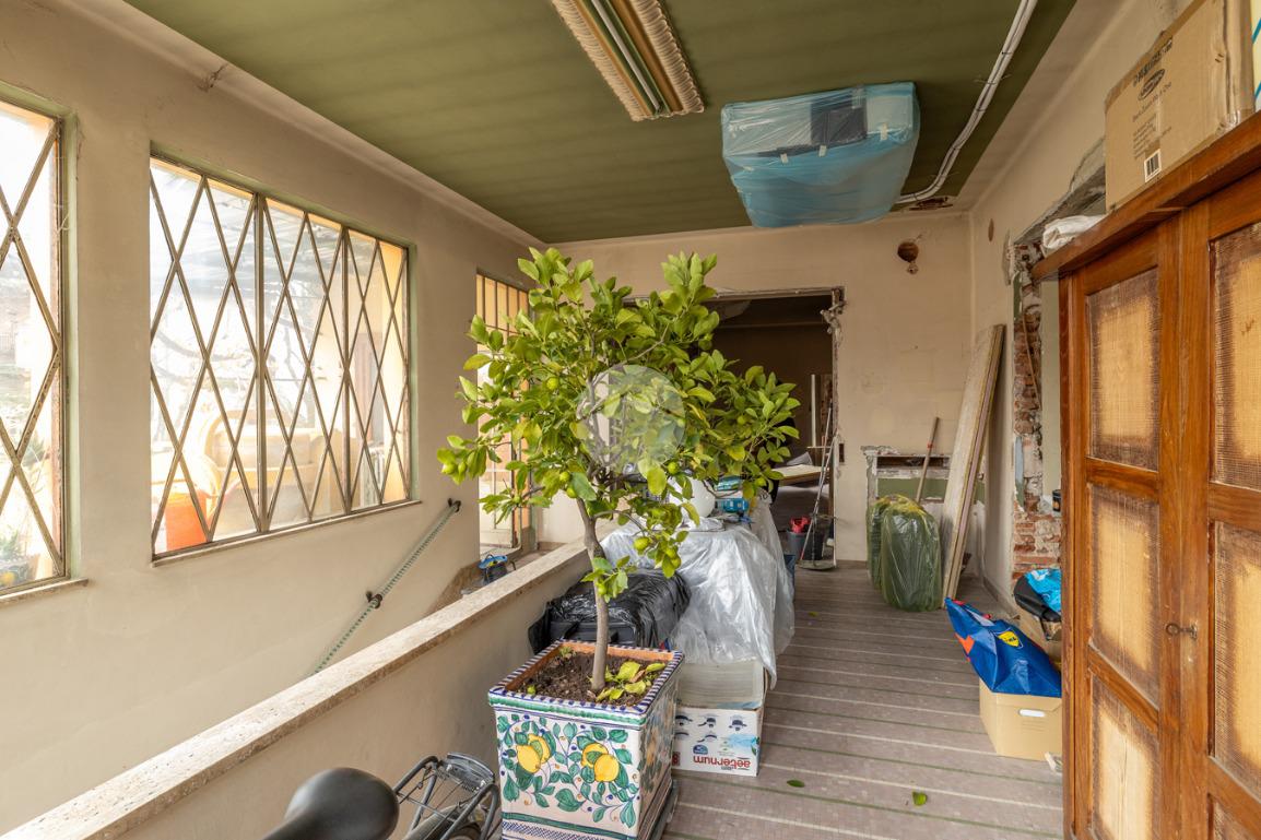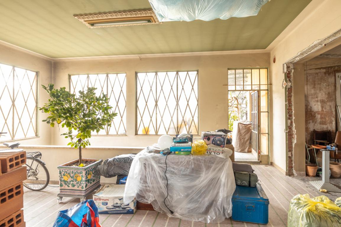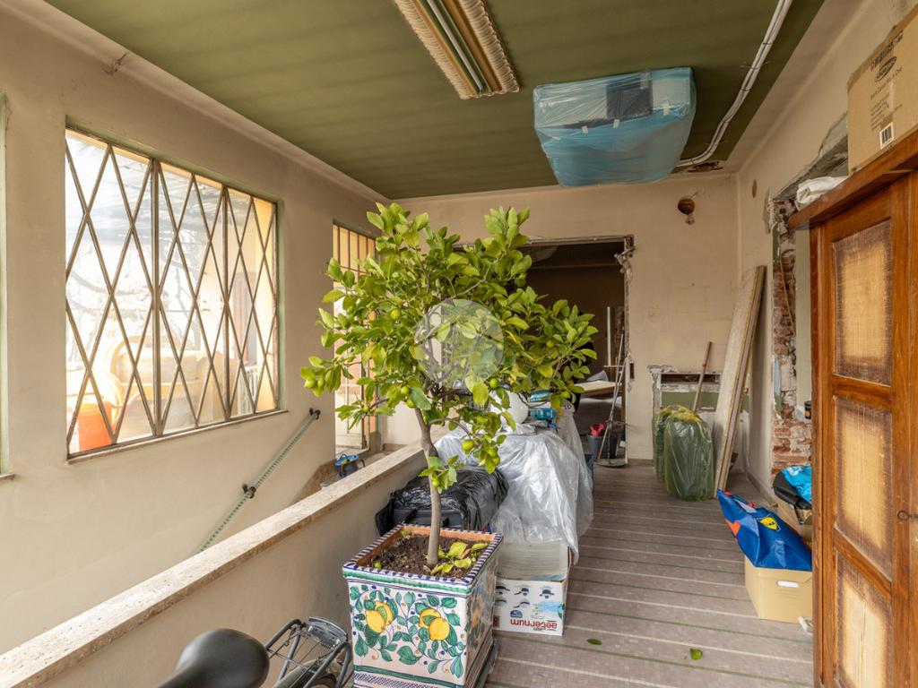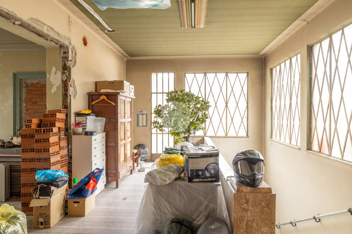 Dal terrazzo si accede a una luminosa veranda che funge da disimpegno centrale e collega in modo funzionale i diversi ambienti della casa, oltre a garantire accesso al piano inferiore tramite scala interna.