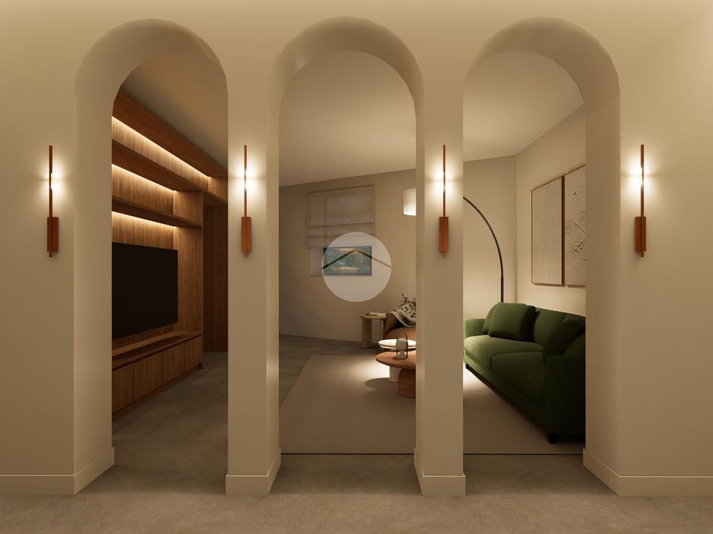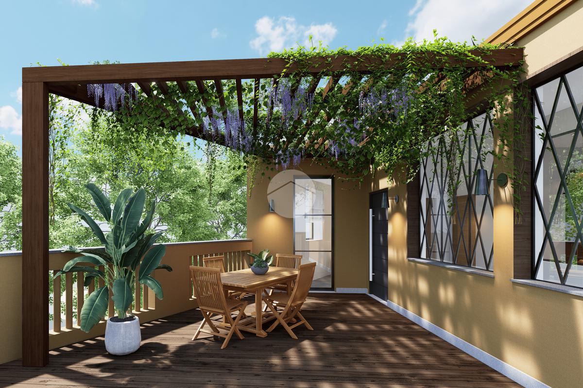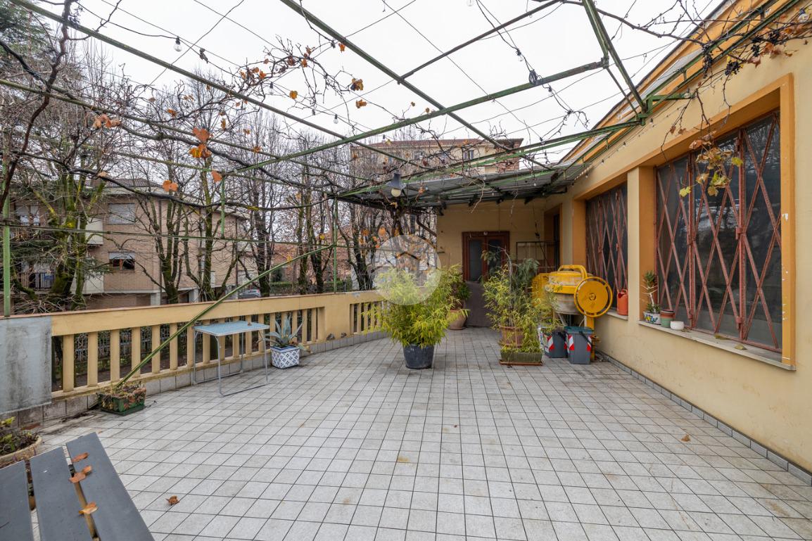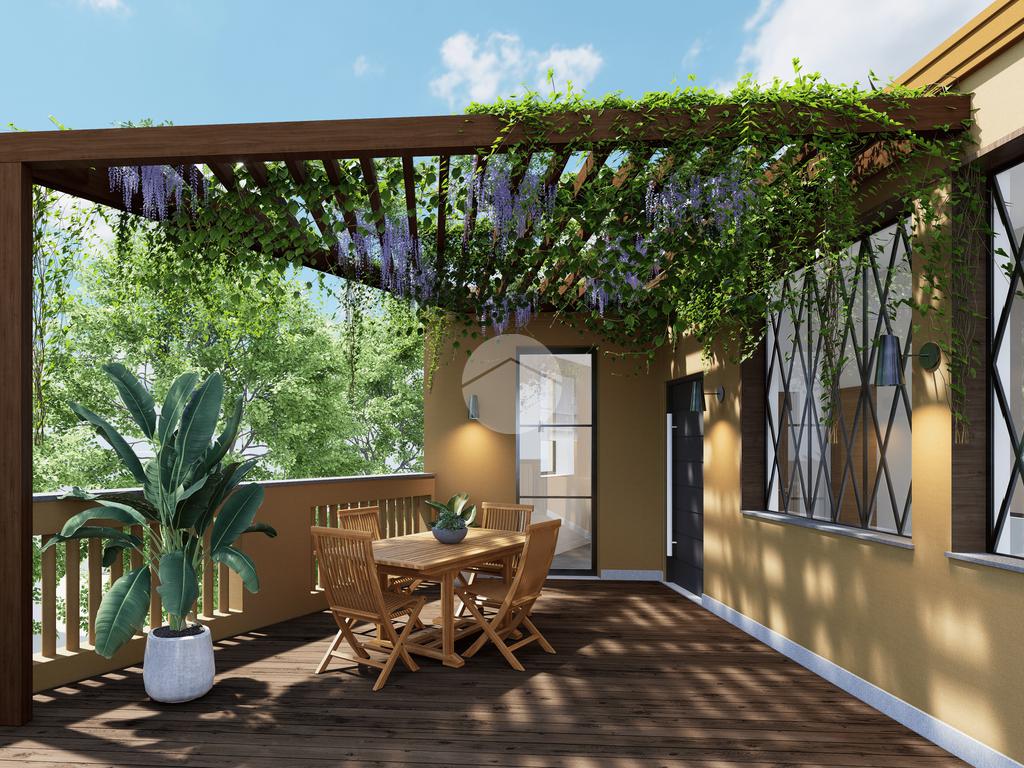 Dal terrazzo si accede a una luminosa veranda che funge da disimpegno centrale e collega in modo funzionale i diversi ambienti della casa, oltre a garantire accesso al piano inferiore tramite scala interna.