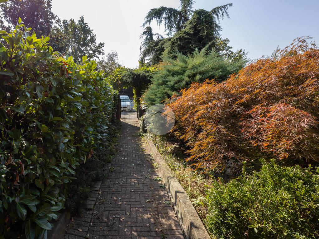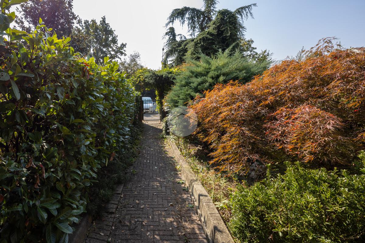 Al piano terra, l’ingresso si apre su un’ampia e luminosa zona giorno, impreziosita da una splendida vetrata che affaccia sul primo giardino privato.